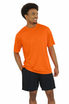 Your new go-to for big events, this tee is built to move, made to print, and priced to win with a classic fit, and performance features that make it anything but basic. Plus, this is available in long sleeve, ladies' and youth companion styles! 6.4 oz, 100% performance polyester interlock with wicking technology. No Bleed Fabric (NBF) created with a unique cationic dye process for easy printing. Taped neck for comfort and durability Side seamed. Double needle cover stitch at sleeve and bottom hem. Breathable. Snag resistant. UV protection = UPF 50+. Classic fit.